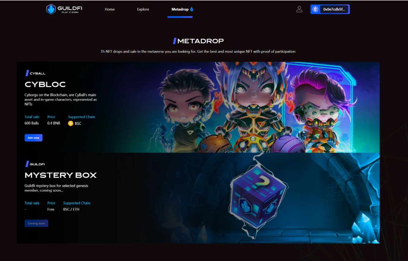 GuildFi平台也提供了一个Metadrop专区,专供游戏方来发布空投,