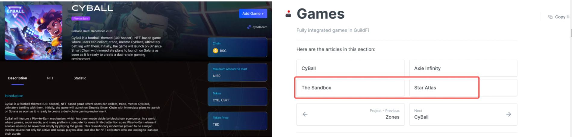 这几款游戏的号召力不必多提,前期选入游戏发现列表中也是GuildFi吸引用户的举措,